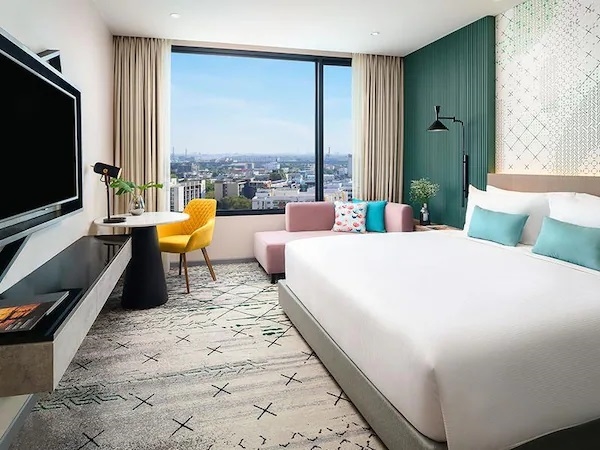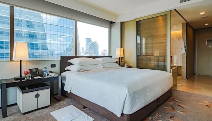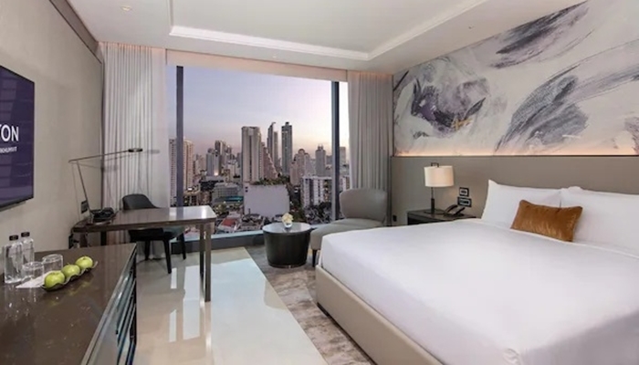 酒店的客房和套房現代而寬敞,配備了現代化的設施,如平板電視、免費Wi-Fi、獨立浴室等。部分房間提供城市全景,讓您欣賞到曼谷的美景。
