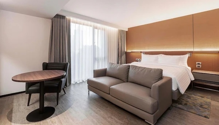 酒店的套房充滿現代風格和舒適感,每個套房都配備了豪華的設施,包括大型平板電視、免費Wi-Fi、私人露台等。部分套房還配有獨立的客廳和用餐區,讓您感受家的溫馨。