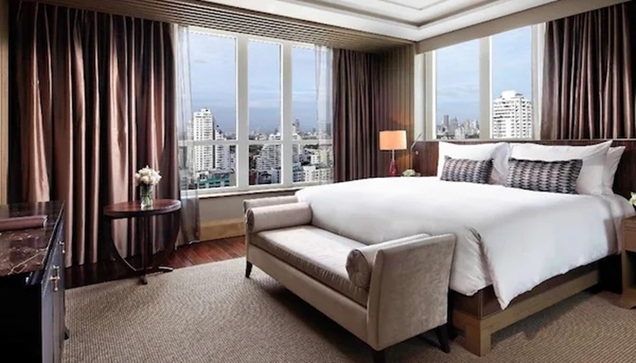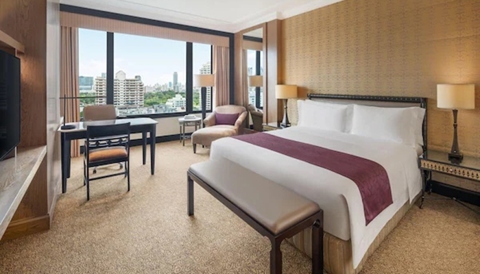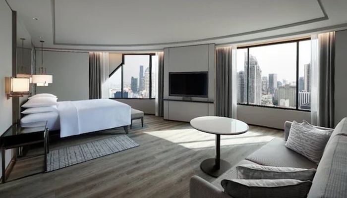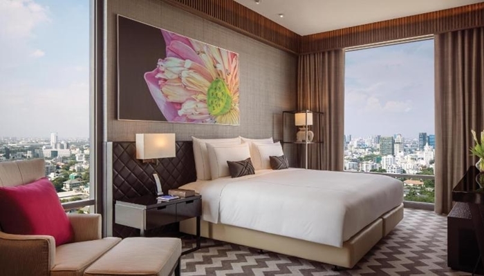 酒店的客房典雅且現代,配備了各種豪華設施,如平板電視、免費Wi-Fi、私人露台等。部分客房提供壯觀的城市全景,讓您盡情欣賞曼谷的美景。