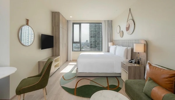 酒店的客房和套房設計現代,配備了各種設施,如免費Wi-Fi、平板電視、小廚房等。客房還設有工作區域,方便商務旅客進行工作。