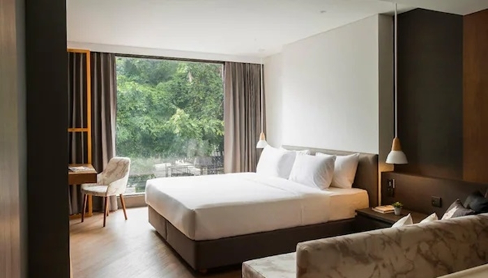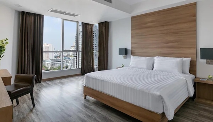 酒店的客房和套房寬敞舒適,配備了現代化的設施,如平板電視、免費Wi-Fi、獨立廚房等。部分客房提供城市全景,讓您欣賞曼谷的美景。