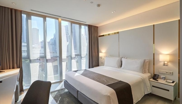 酒店的客房和套房設計精緻,配備了各種設施,如免費Wi-Fi、平板電視、小廚房等。部分客房可能提供城市全景,讓您欣賞到曼谷的美景。