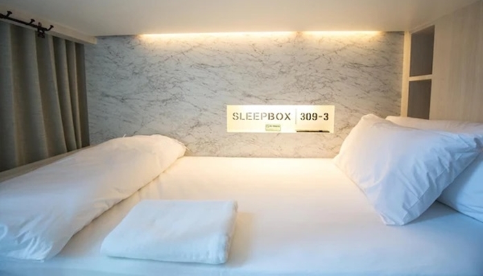 旅館的Sleepbox客房設施完善,內部設計現代簡潔。每個Sleepbox配有舒適的床鋪、個人儲物空間、免費無線網絡等,確保旅客有一個愉快的住宿體驗。