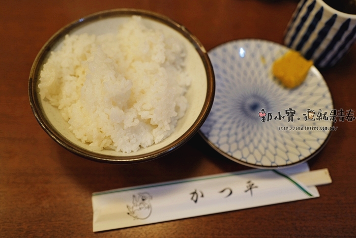 | 快速點完餐後,等待老闆的炸豬排需要一小段時間,等到豬排炸好後闆娘就會拿上白米飯跟黃芥末碟子。 |