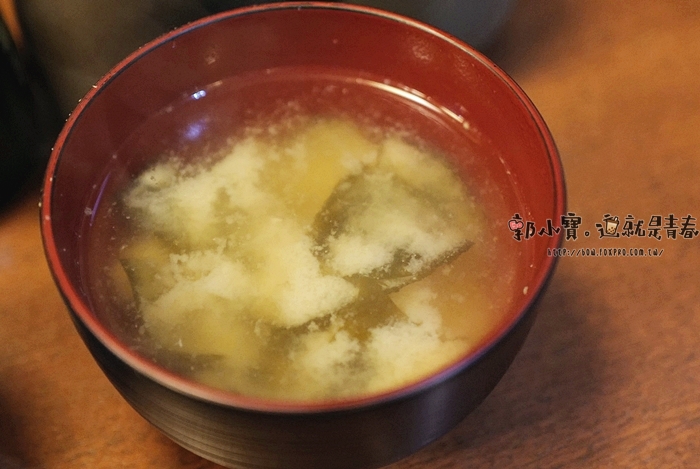| 他們家的湯品較淡,看起來應該是海帶味增湯,跟一般炸豬排用豬肉跟味噌熬煮的豚汁不一樣,但是我也滿喜歡這樣爽口的味噌湯。 |