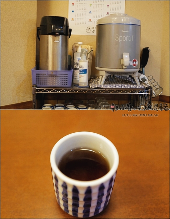 | 一旁有熱麥茶,但是都是闆娘親自服務倒給我們,冬天喝上一杯熱茶超舒服。 |