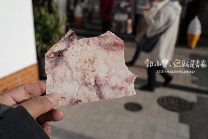 | 我趕緊跟太妃要了一小片來加強我的智商稅,吃了一口是也不難吃,就是鹹鹹的麵粉餅,脆脆的,結案,一路上看到很多人再買,我個人是不會再買了,但是如果第一次來江島倒是可以繳個智商稅,多人一起買試試看一下也好。 |