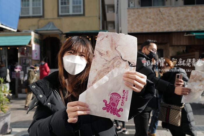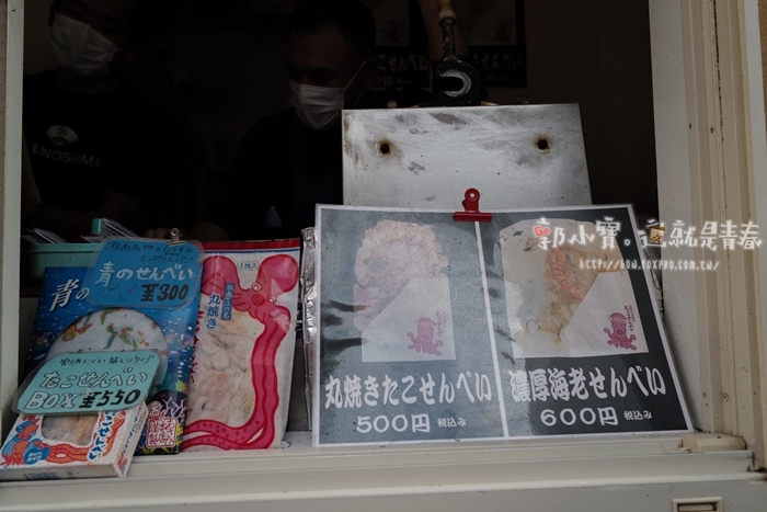 | 目前這邊販售兩款海鮮仙貝,分別是章魚跟海大蝦兩款,價格也不是特別貴,500、600日幣的選擇,大概都是台幣150元左右。 |