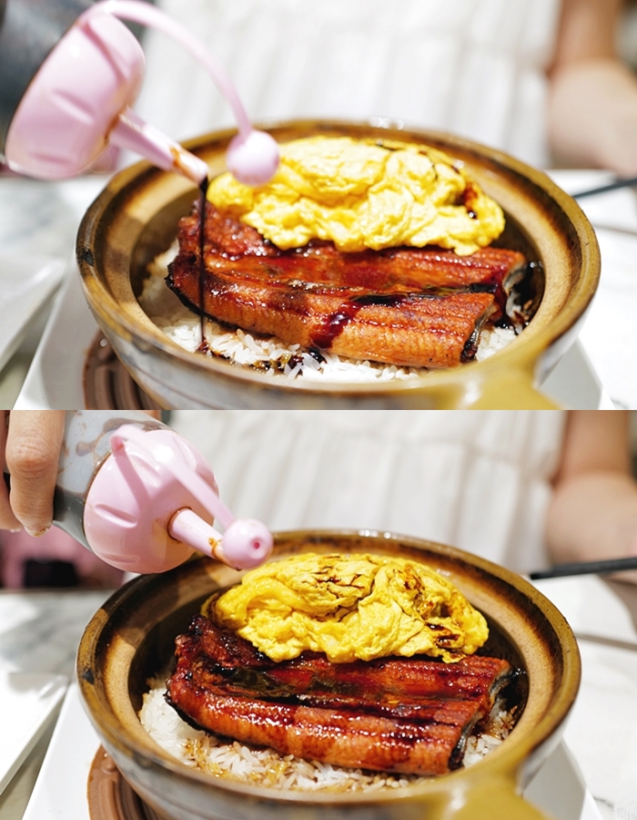 | 點日式鰻魚煲仔飯會附上一瓶醬汁,依照每個人的口味自行添加,鰻魚吃起來稍嫌普通,除了鰻魚以外還有一份嫩蛋,當初還沒發生新聞事件的時候,我們就有特別交代了一下店員,嫩度的熟度要熟一點,畢竟在國外,對於吃的我們也相對小心。 |
