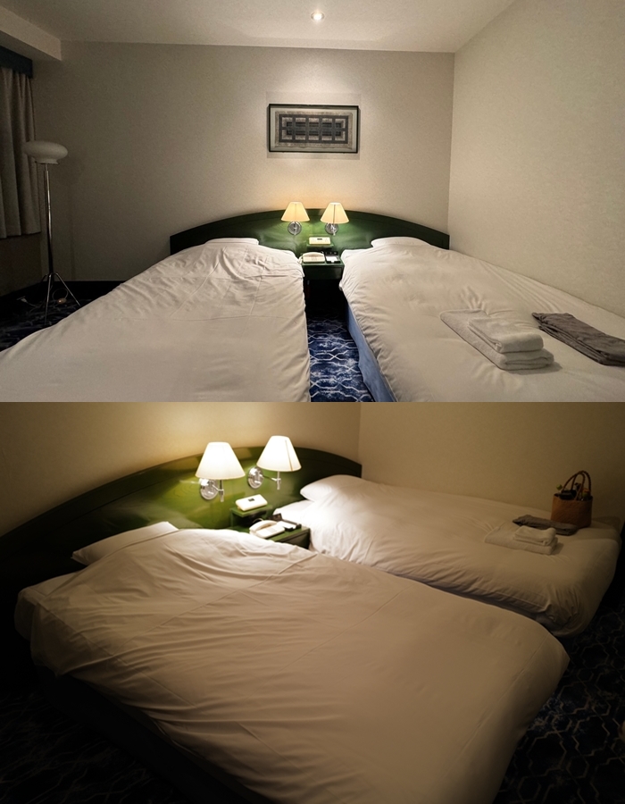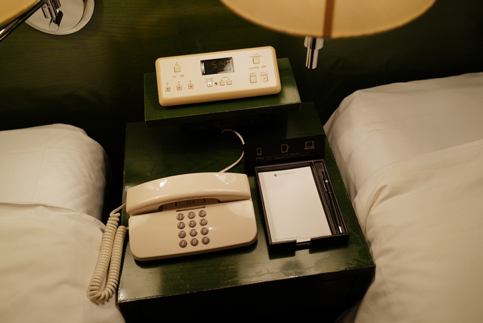 | 兩張單人床都是大號單人床墊,床板也是綠色絨毛,整體感覺起來非常高雅,床頭燈是一邊一個,互相不打會打擾到隔壁床。 |