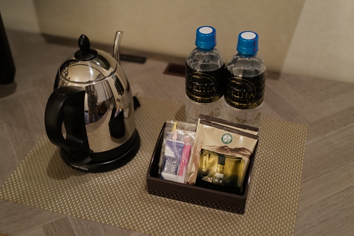 | 使用長嘴電熱水壺非常典雅,另外茶包跟咖啡包應有盡有。 |