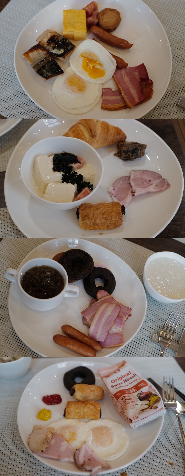 | 全家一起開心的吃了滿足的早餐,除了日本的米飯跟小菜以外也有提供粥品,另外就是西式麵包跟土司。 |