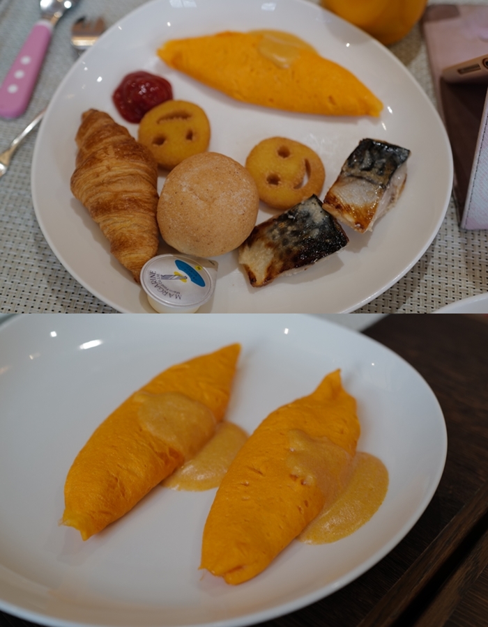 | 歐姆蛋也很不錯,裡面切開是較熟的歐姆蛋,這樣的口感滿合我女兒的口味。 |