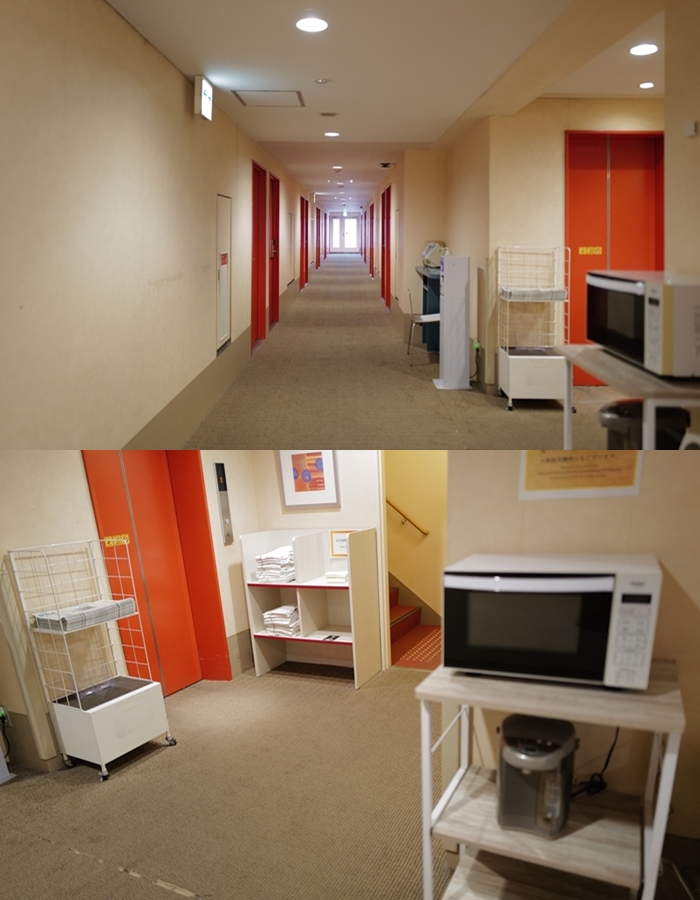 | 辦理好手續終於可以進房了,大部分的電器、睡袍都在電梯前需要自行拿取,微波爐是共用的。 |