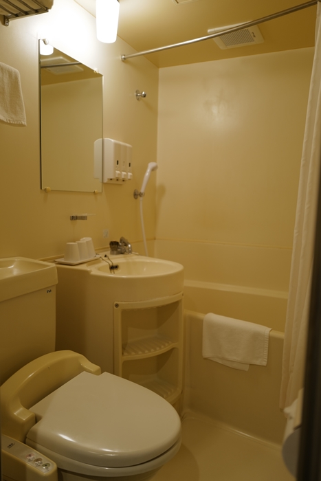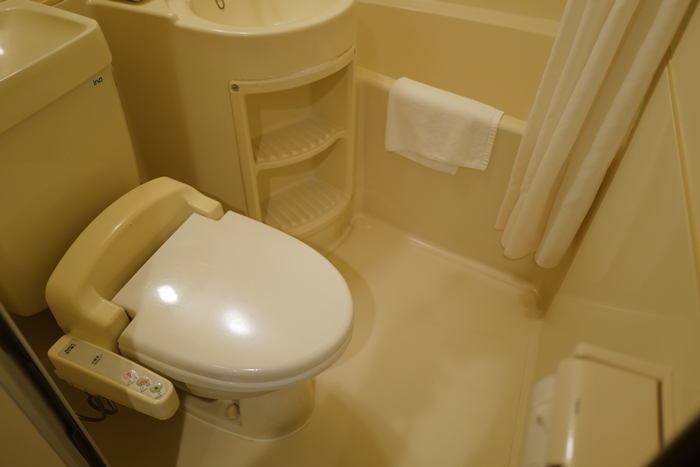 | 廁所是一體式廁所,馬桶當然是免治馬桶,日本有9成的旅館飯店幾乎都有馬治馬桶,浴缸是中型浴缸。 |