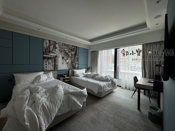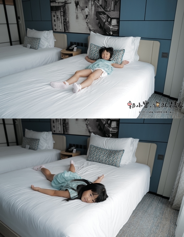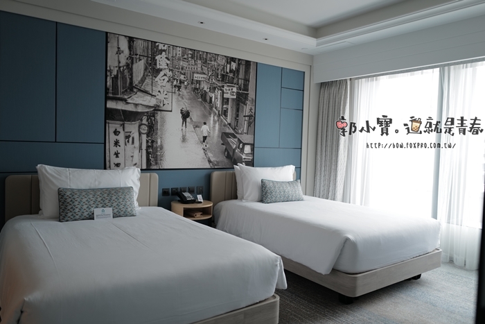 | 寢室的部分採光非常好,空間並沒有特別大,但是也不小了,我覺得恰到好處,壁上掛的是澳門早期的黑白照片,時尚結合復古,新舊融合的意境非常讓我喜歡,床鋪都是雙穰床,且睡起來不會過軟,有些軟床我都睡到腰酸背痛,枕頭都是雙顆枕頭還有靠枕。 |