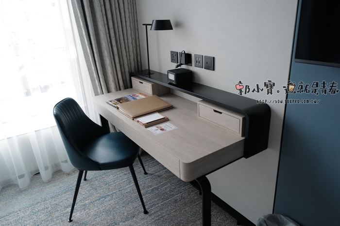 | 房內還有一個書桌,書桌也是我很需要的,畢竟每天都開電腦工作,書桌也走實用為主,簡潔的桌面還有充足的電源插孔。 |