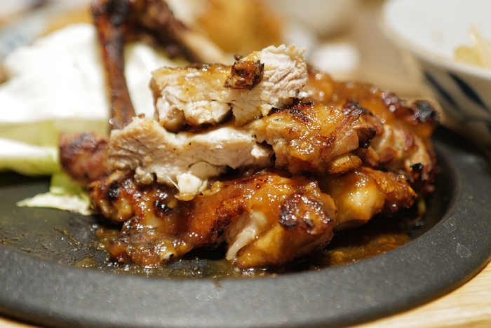 | 雞腿肉還滿嫩的,上面淋的醬口味較重,我喜歡它們的雞皮煎到赤赤脆脆的,不知道是不是因為火燒的關係。 |