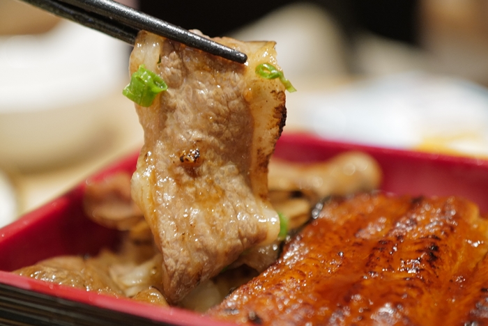 | 老婆點菜的時候看到這一份和牛跟鰻魚的組合一整個眼睛發亮,這兩道食材就是她的最愛,上桌的時候一整個香氣噴發,鰻魚烤的跟日本似乎有點不同,醬汁沒有那麼眾也沒有烤的那麼熟,蛋是老婆依然很滿意。 |