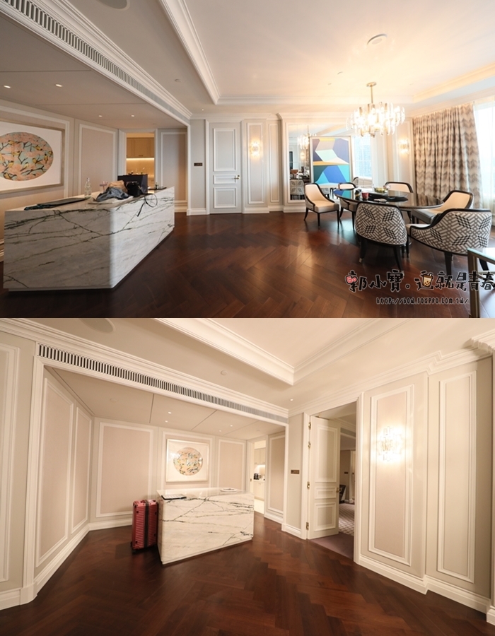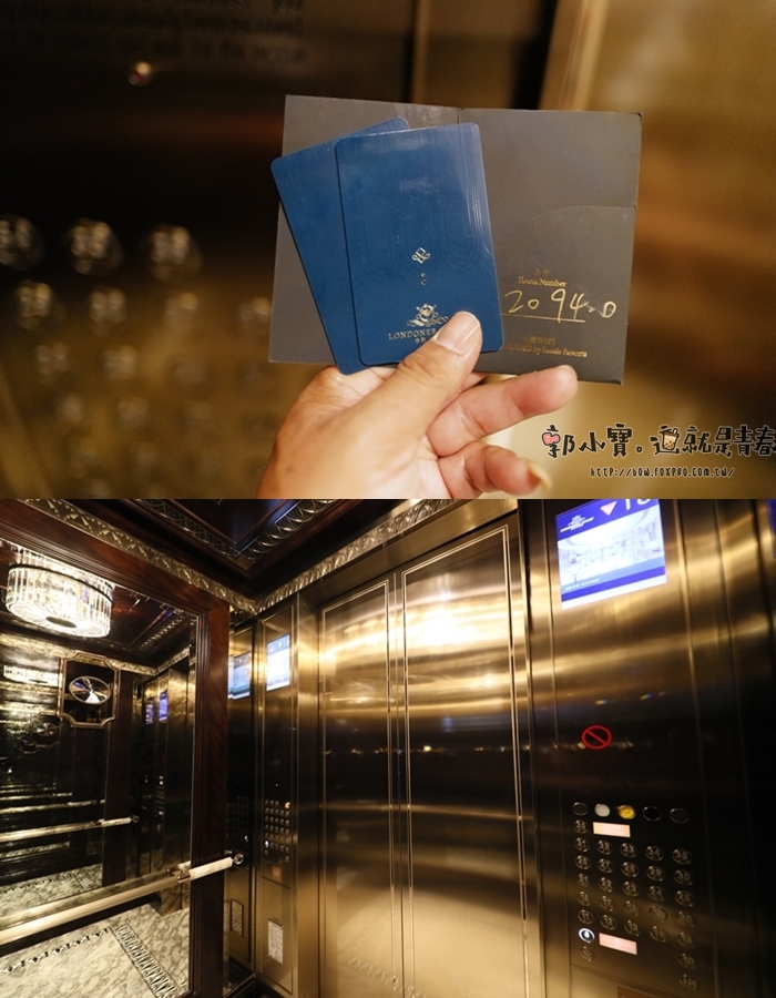 | 拿到房卡後就直接前往20樓的房間,連電梯都金碧輝煌的超氣派,我們這次入住的房間是倫敦人御園裡面比較稀少的房型,也是最大的套房,兩房一廳的房間。 |