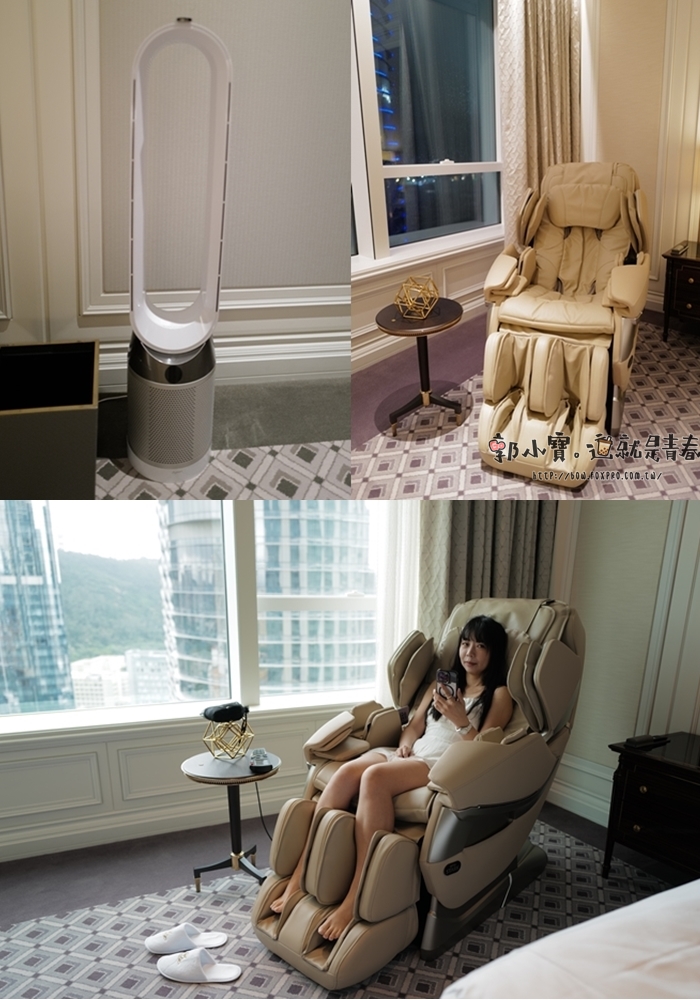 | 兩個房間都還有準備戴森的冷暖真空無葉扇,按摩椅一定要給他躺一下,放鬆一天的疲勞最適合,每天晚上都需要躺在這裡看手機享受按摩。 |