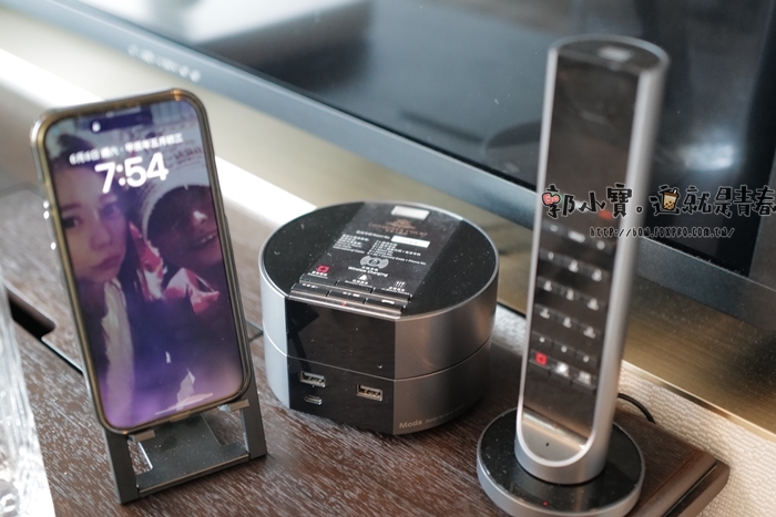 | 一晚睡起來不薈腰酸背痛,且床頭櫃還很貼心的給了水晶水波,另外又放了一個保溫壺,小細節都考慮的很貼心,果然是御園阿,藍芽喇叭的音質也沒話說,上方支援無線充電。 |