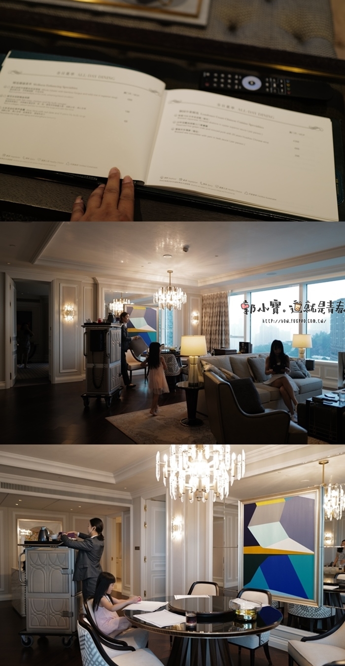 | 隔天起床是直街叫客房服務吃早餐,KING 9 京匯提供我們一定的客房額度可以使用,所以我們索性一天就直接在房間吃早餐,但是後來才知道,御園本身的早餐餐廳就很誇張了,隔天我們就衝御廷苑。 |