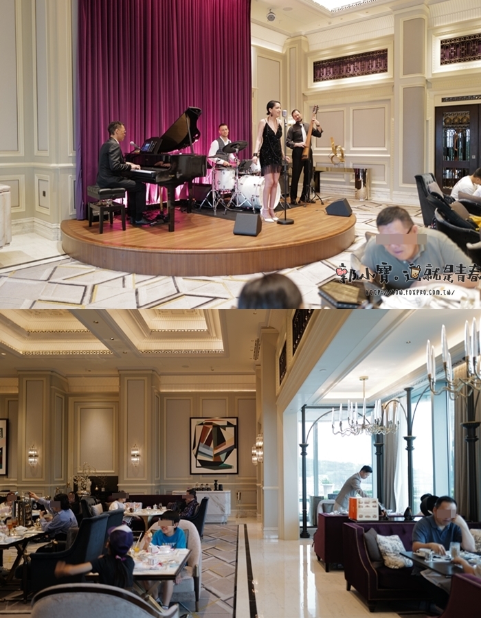| KING 9 京匯還幫我們預約了御園房客專屬的御景薈下午茶餐廳,當然費用也都是KING 9 京匯已經處理完了,我們還約了朋友一起去喝下午茶聊天,餐廳裝潢非常時尚,空間的氛圍感也很好,還有現場的演唱。 |