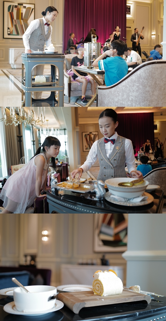 | 除了下午茶套餐以外,現場還有甜點推車,不定期都會推不一樣的蛋糕甜點給客人享用,蛋糕卷超級好吃,一整條備我們當場就要了半條以上,女兒一直比大拇指說讚! |