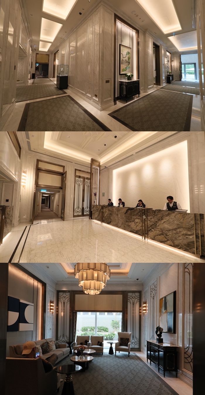 | 搭乘電梯直達8樓櫃台大廳,上來後才是御園的櫃台大廳,跟瑞吉一樣有專屬的香味,看到這豪華的大理石裝潢就知道用料很恐怖了,櫃檯沒有吵雜的人潮,安靜典雅的空間真的讓人感覺到很舒服。 |