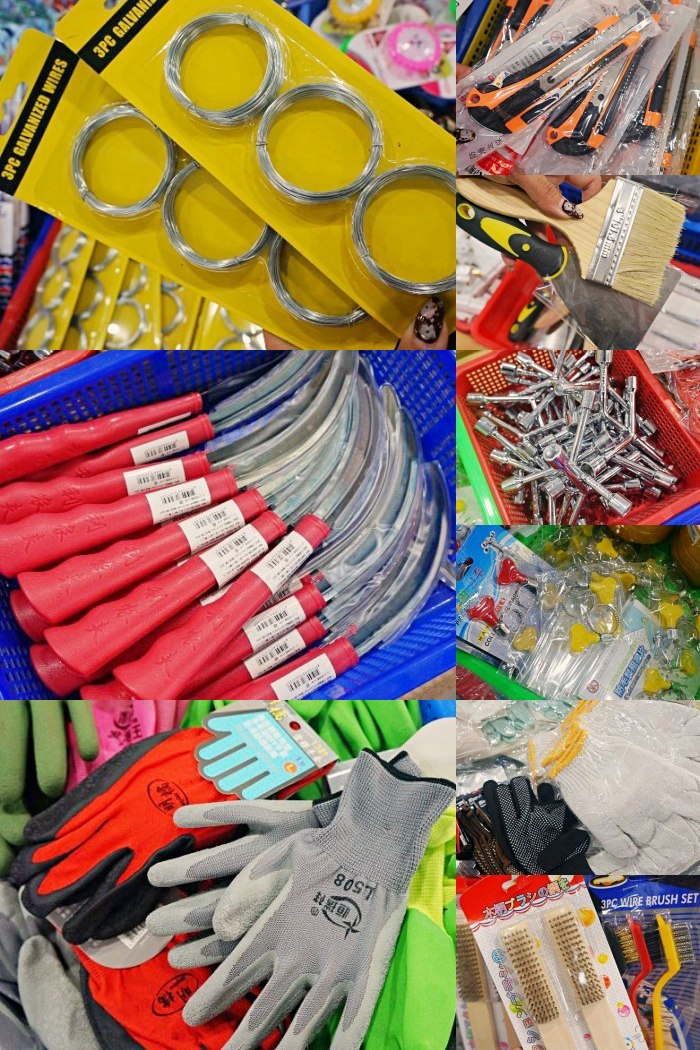 | 現場有很多居家生活都需要購買的五金百貨,很多商品都在百元內就可以入手,不管是塑膠椅還是曬衣夾、置物籃等等都很好挑選,根本都是隨便亂賣!! |