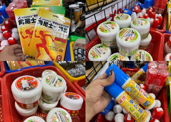 還有各種的酸痛貼布、藥膏、金門一條根,這些依照上面貼的標價,還是很便宜值得買。