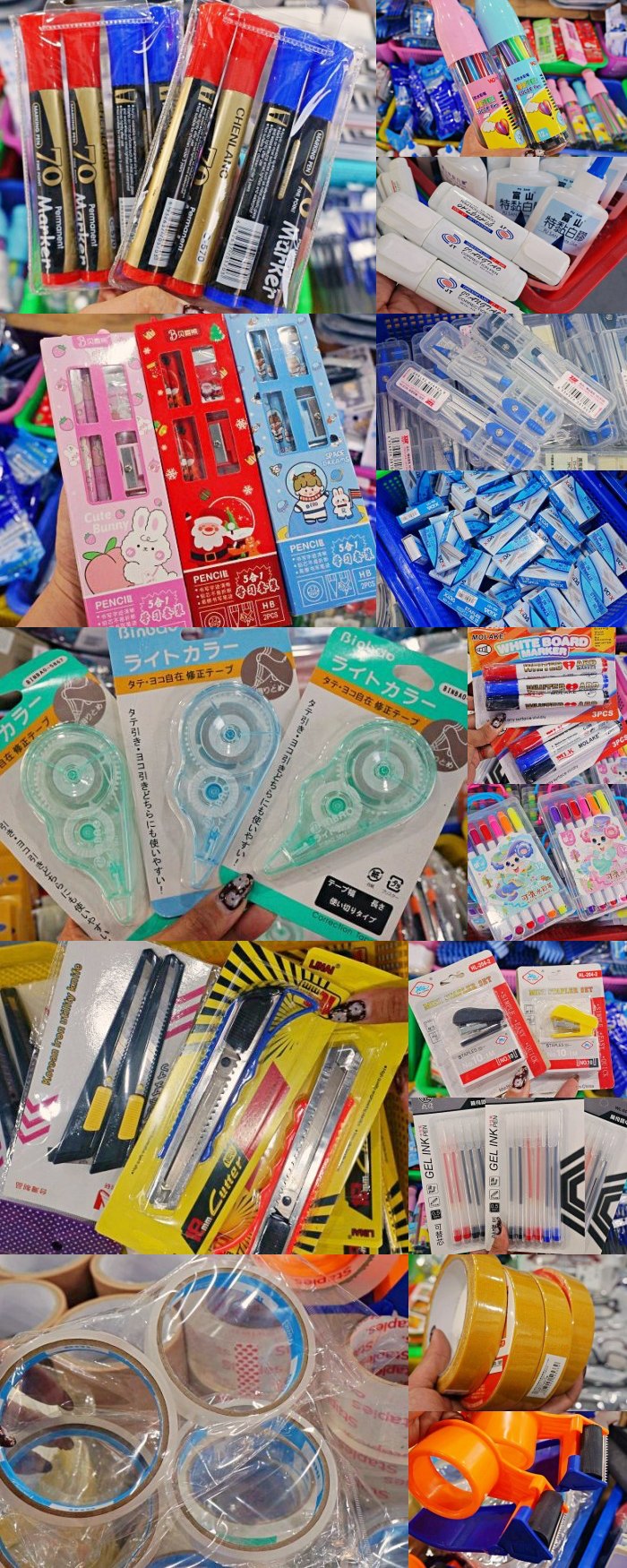 各式各樣的文具用品也有很多選擇超級好買,一整組的奇異筆,一組4隻的原子筆都是20元,各種圓規組還有超多膠水、手機架、膠帶膠台、各種小刀、膠帶真的都只要20元,每次來這裡工作我自己都會淪陷大買特買才肯離開,真的太好買了。 |