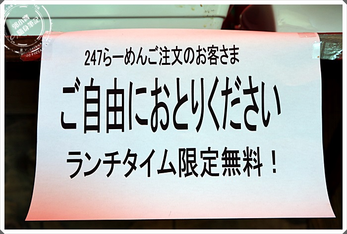 | 逛了一圈讓我比較有興趣的本來是良朗商店,但是最後我還是選擇了拉麵247,因為他的宣傳物看起來好像比較厲害,而且他的拉麵500日幣真的很超值。 |