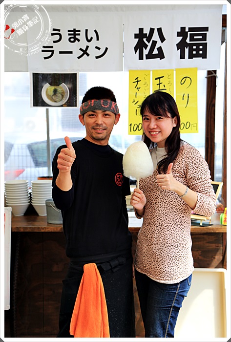 | 松福的老闆真的超帥氣的,後來還有特別來跟我們聊天拍照,因為我跟她說我來自台灣,而且很喜歡並且很久以前就知道它們家的拉麵了,松福拉麵的老闆當天還是2點才開始販售,真的是霸氣無限,準備營業前的霸氣綁頭巾。 |