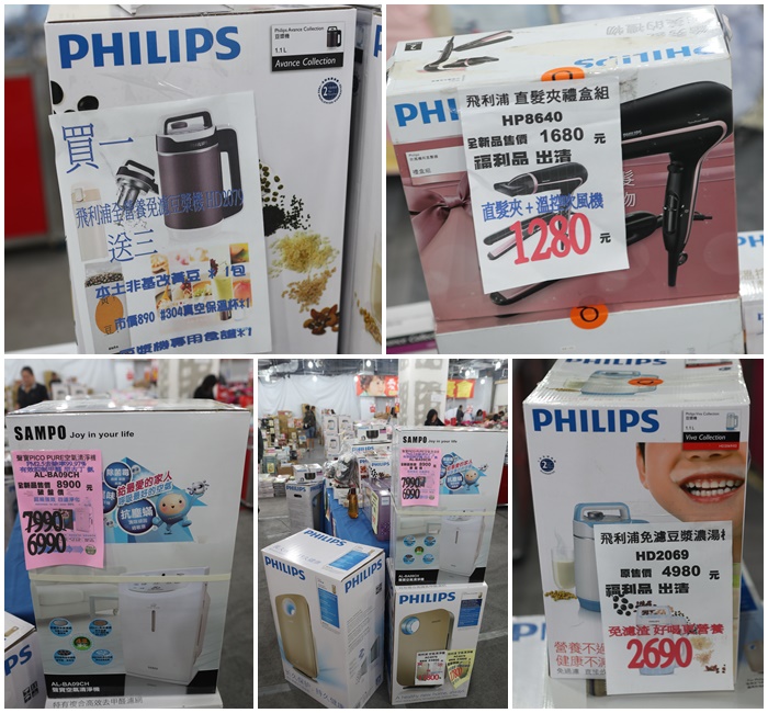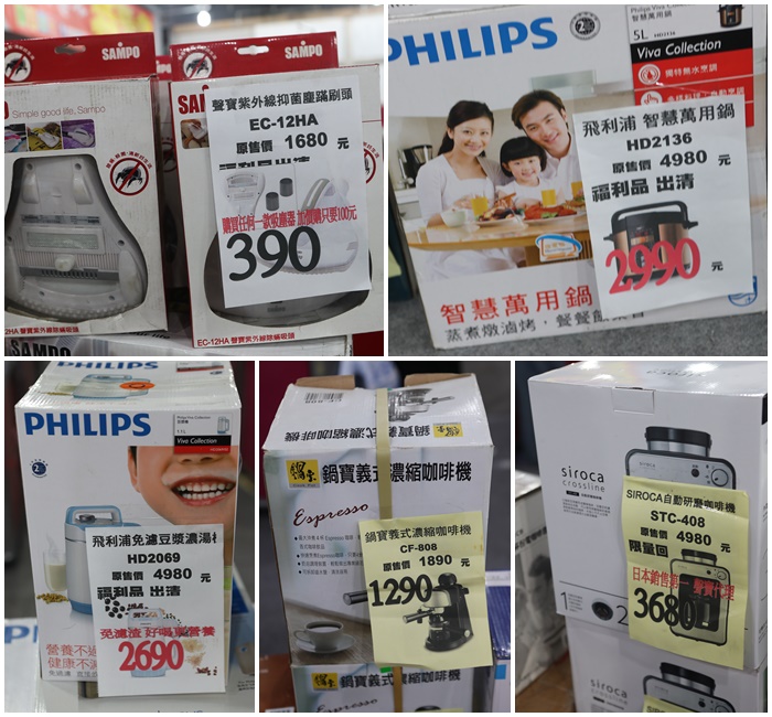 | 現場真的太多小家電都是媽媽們最需要入手的,小家電裡面有新品也有福利品,現場真的相當多商品,所以我也沒辦法一一的拍仔細,有興趣的朋友真的可以親自走一趟好好的挖個寶,我個人因為冬天的關係,還買了烘被機,北部的冬天真的又冷又潮濕,棉被幾乎都感覺很潮濕,烘過的棉被蓋起來暖烘烘又舒服。 |