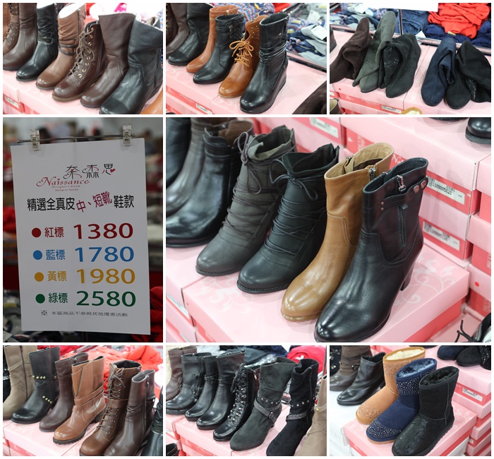 | 最後就是鞋子的區域了,這次的鞋子把熱銷款的真皮長薛通通推出來,蜈蚣腳的各位女性朋友們,真皮長靴動則就要5000大洋以上,這邊最便宜殺到免2000元,真的是殺很大,而且車縫線根質感都相當的好。 |