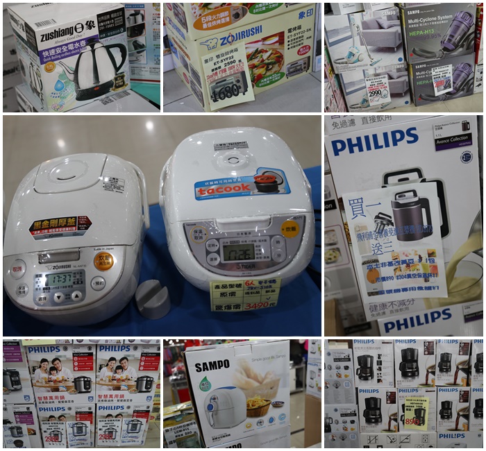 | 象印日本原裝進口的電鍋挑戰通路最低價,買到真的是賺到,因為這樣我還特地上網查了一下價錢,真的都很漂亮,整場裡面有新品也有福利品,有貼紙標示,新品的部分通通保固兩年,福利品保固一年,飛利浦、聲寶、各品牌電器通通出爐! |