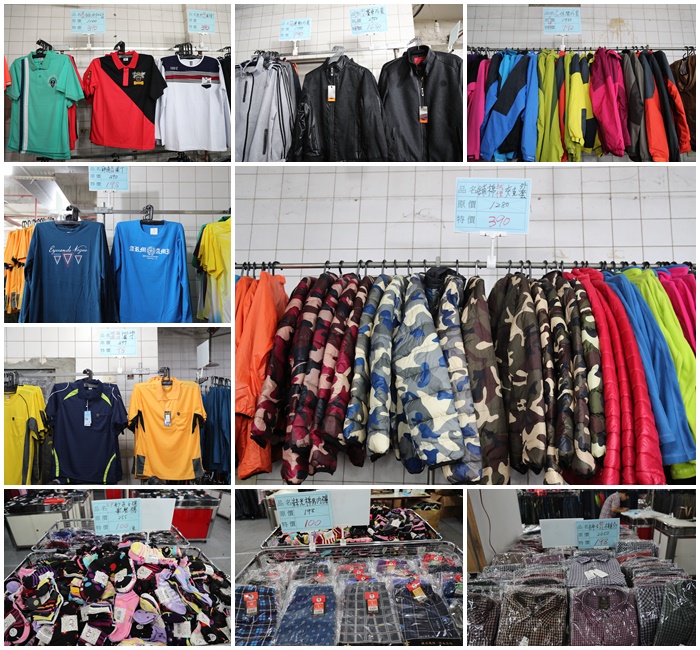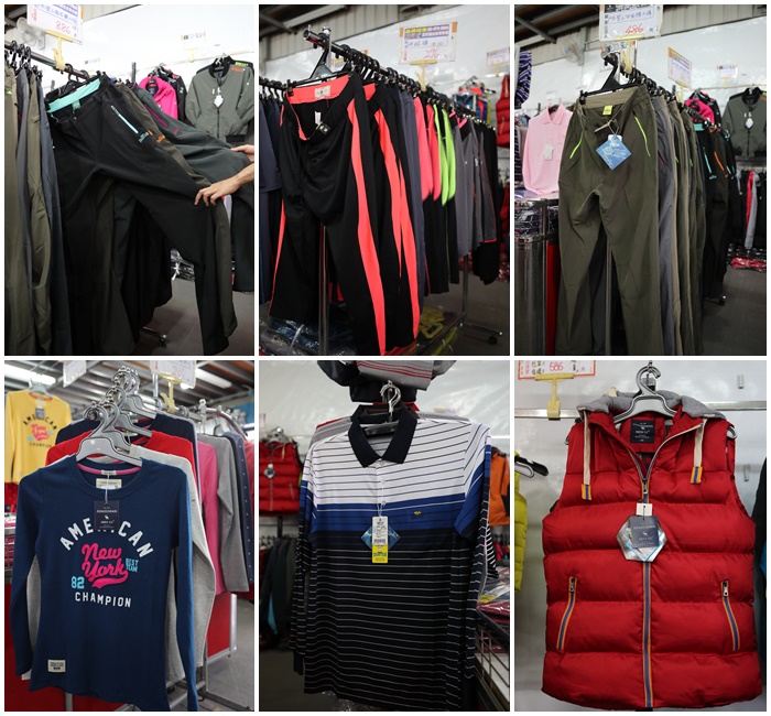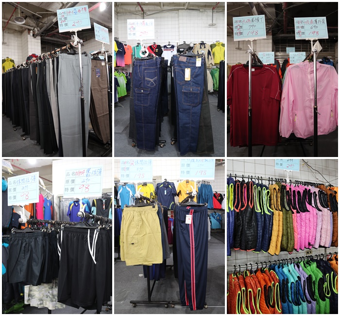 | 各式各樣的彈力褲跟運動褲還有T桖跟排汗衣褲通通下殺到很誇張的地步,很多商品都在1.2百塊左右就可以帶回家,他們家算是比較屬於美式風格,適合各年齡層的人穿著。 |