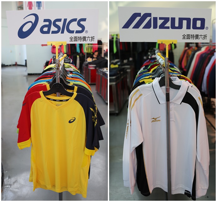 | 零食旁邊還有一家專門的運動服飾廠商,最值得一看的就它們家的亞瑟士跟美津濃衣服全面都是六折出清,之前北部幾個場地幾乎都是賣翻了,這兩個品牌的服飾很多人都超愛的,六折算是超低的價格了。 |