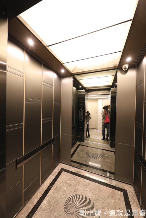 | 電梯跑的速度還滿快且平穩的,我喜歡的是他們電梯內是採用皮革縫製,非常有質感。 |