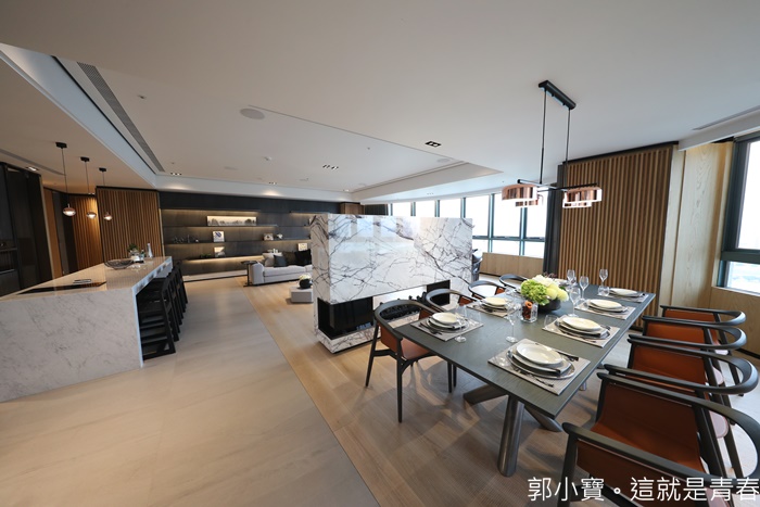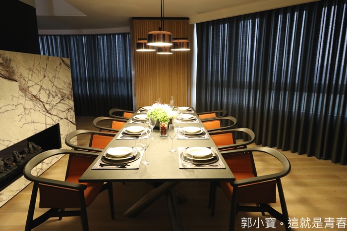 | 一入門的規劃就是飯廳,基本上這是富裔河規劃的樣品屋,因為客廳真的超大的,所以對於設計師來說也非常好規劃。 |