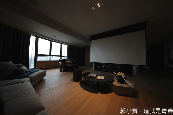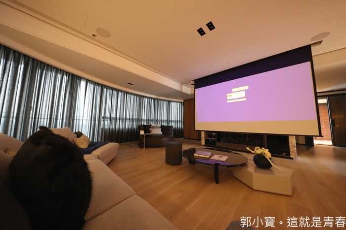 | 只有大客廳可以那麼任性的裝上投影大銀幕,這氣勢一整個就是爽度破表,加上電動大窗簾,這簡直就是五星酒店的總統套房規格了,好想要每天都住在總統套房裡面,真的超愛的,且這些全部的家電功能都可以整合在裡面,一台平板就可以控制家裡面的各項燈光跟娛樂視聽設備,真的是越看越心動啊!!!!!! |