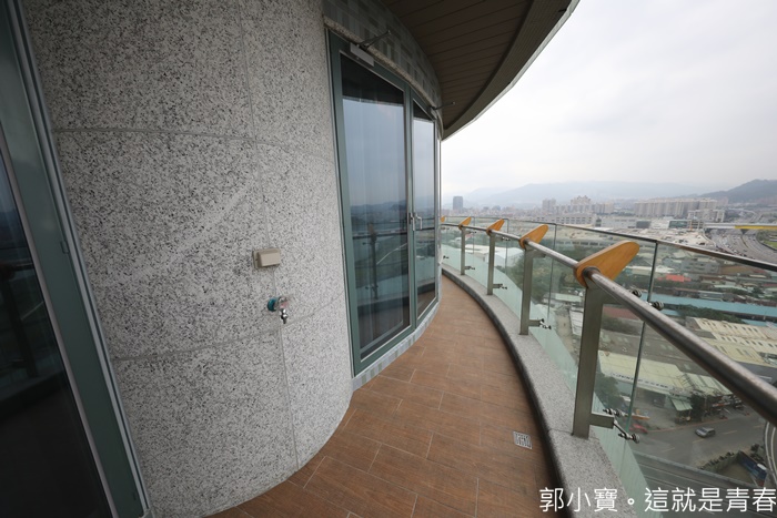 | 一走出戶外陽台也一整個超喜歡的,戶外陽台不管哪一戶都是面對河岸美景,晚上的時候一整個就是超漂亮的,免費的千萬夜景就呈現在眼前,說到這裡忘了跟大家報告,這邊可以直接眺望到101大樓,以後跨年欣賞煙火的好地方,不用再去人擠人看煙火了。 |