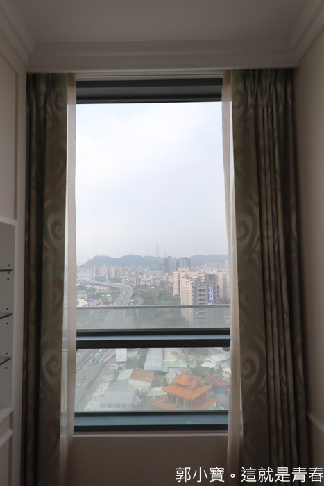| 我喜歡這走道是因為這窗戶開在這裡就像是一幅畫,因為拍照的關係所以沒那麼清楚,現場看就可以很清楚的看到101就在正中央,是一幅會隨著日昇日落動態的風景畫。 |