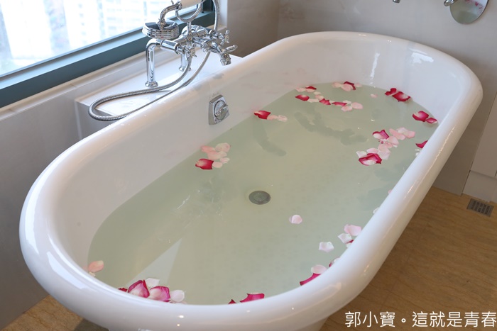 就很認真的玩起花瓣來,話說這蛋型浴缸也是很多女孩子喜歡的,只是我覺得旁邊的復古式蓮蓬頭一直讓我想拿起來說妳打錯電話了.... |