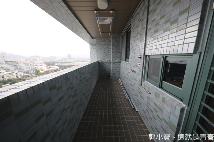 | 買房子我個人一定會看的後陽台也是一整個超大的,放個幾台洗衣機都不是問題,最主要富裔河還有特別規劃冷氣主機的置放空間,一點都不會佔到現有的坪數也不會影響建築外觀,而且富裔河規劃的不只如此,我到後陽台的時候才發現原來它們是雙逃生道,電梯旁的逃生道跟後陽台的逃生道是完全不相通的,兩座獨立的逃生道更安全,可能我沒看過豪宅,這真的是我第一次看到這種設計的逃生道。 |