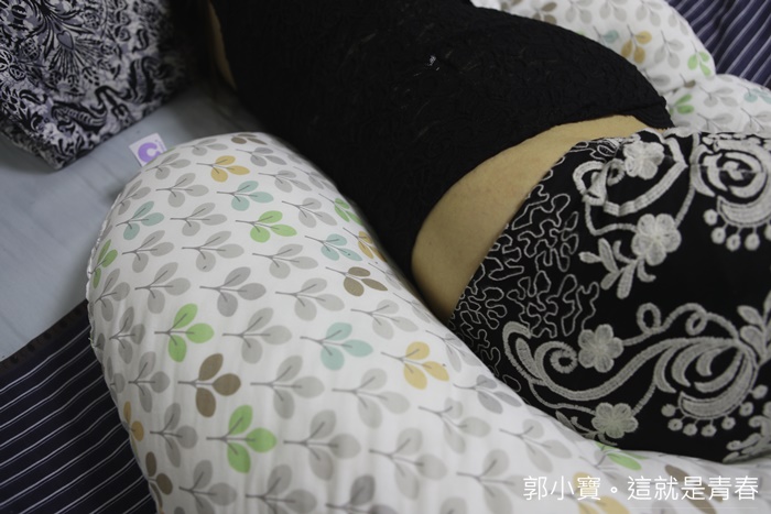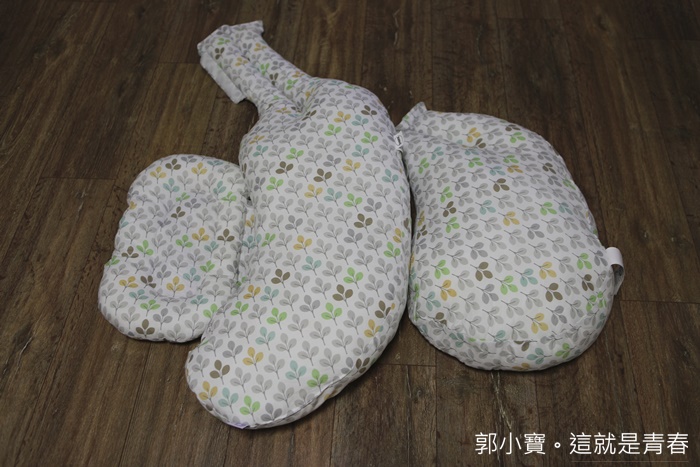 | 有時候也可以拿掉下肢枕,只留頭頸枕跟背腹枕,但是孕媽咪似乎都很習慣夾著下肢枕,不過也因為它可以靈活搭配我才覺得這一顆CP值很高。 |