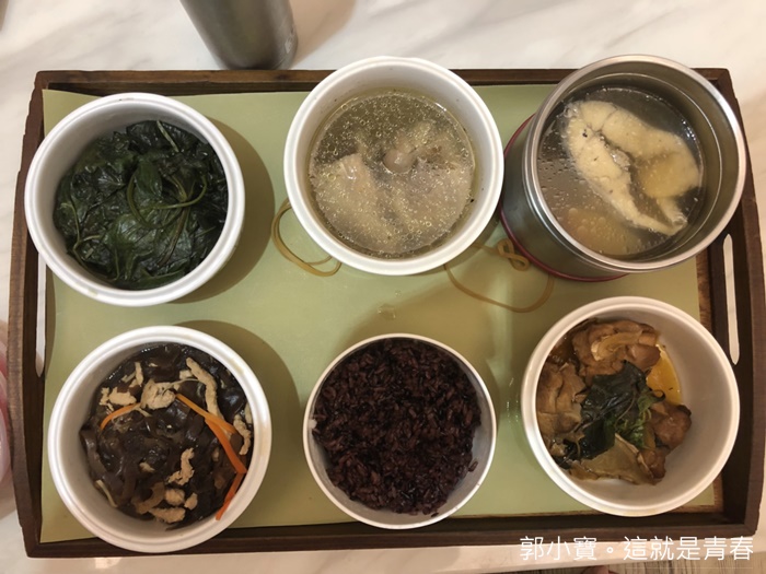 | 參觀月子中心的其中一個重點就是要試吃它們的月子餐,需繳交500元的試吃費,福臨產後護理之家配合的月子餐是訂台北超火紅的禾馨婦產科旗下的芽果月子餐,之前我有注意過這一家的月子餐,一天的費用是2200,這大概是雙北地區最頂級的月子餐了,芽果的月子餐之前沒有試吃過,碗盤使用的是陶瓷碗,氣孔蓋的設計方便保溫,當天吃起來還是熱的,且這類型的設計也很方便加熱,太妃吃完表示還滿好吃的又不會很油膩,除了主食以外,菜、肉、湯品都依應具全,且都還有甜點。 |