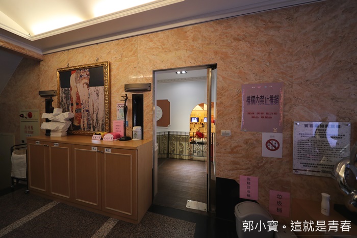 | 進出都需要按對講機確認訪客身分後才能進入,進入訪客大廳還有個小玄關,裝潢有別於一般的月子中心,第一眼的感覺是挺豪華的,訪客必須在這邊換上拖鞋及戴上口罩,參觀福臨產後護理中心必須事先預約。 |